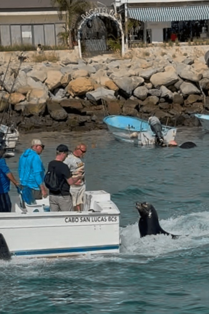 On our way back to the ship it looked like there was a pelican wake surfing behind a fishing boat with a sea lion begging. We missed the pelican in the picture, however here’s the sea lion riding the wave.