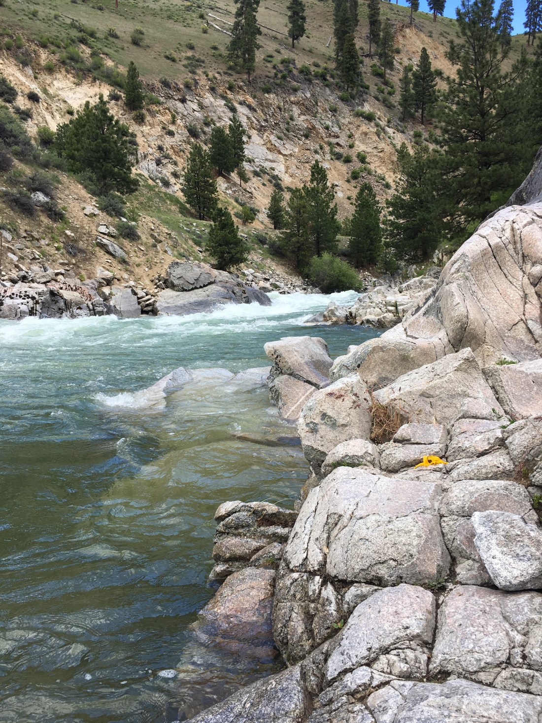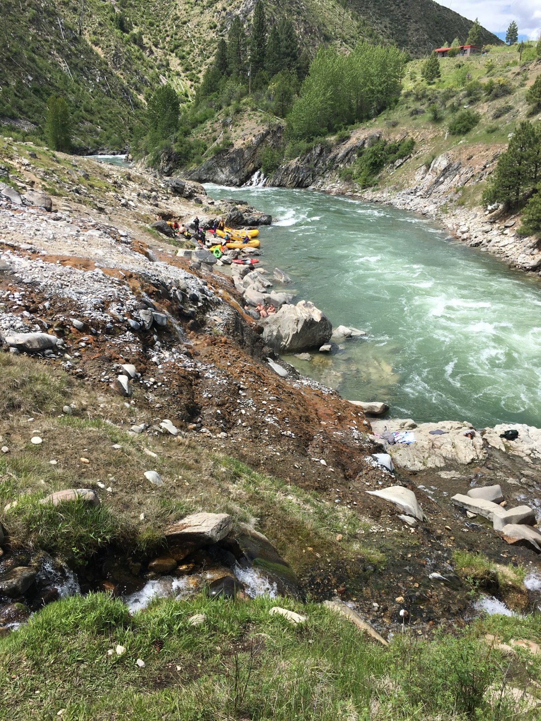 The river is so high from the snowmelt and rains it is coming into some of the lower hotspring pools and cooling them off.