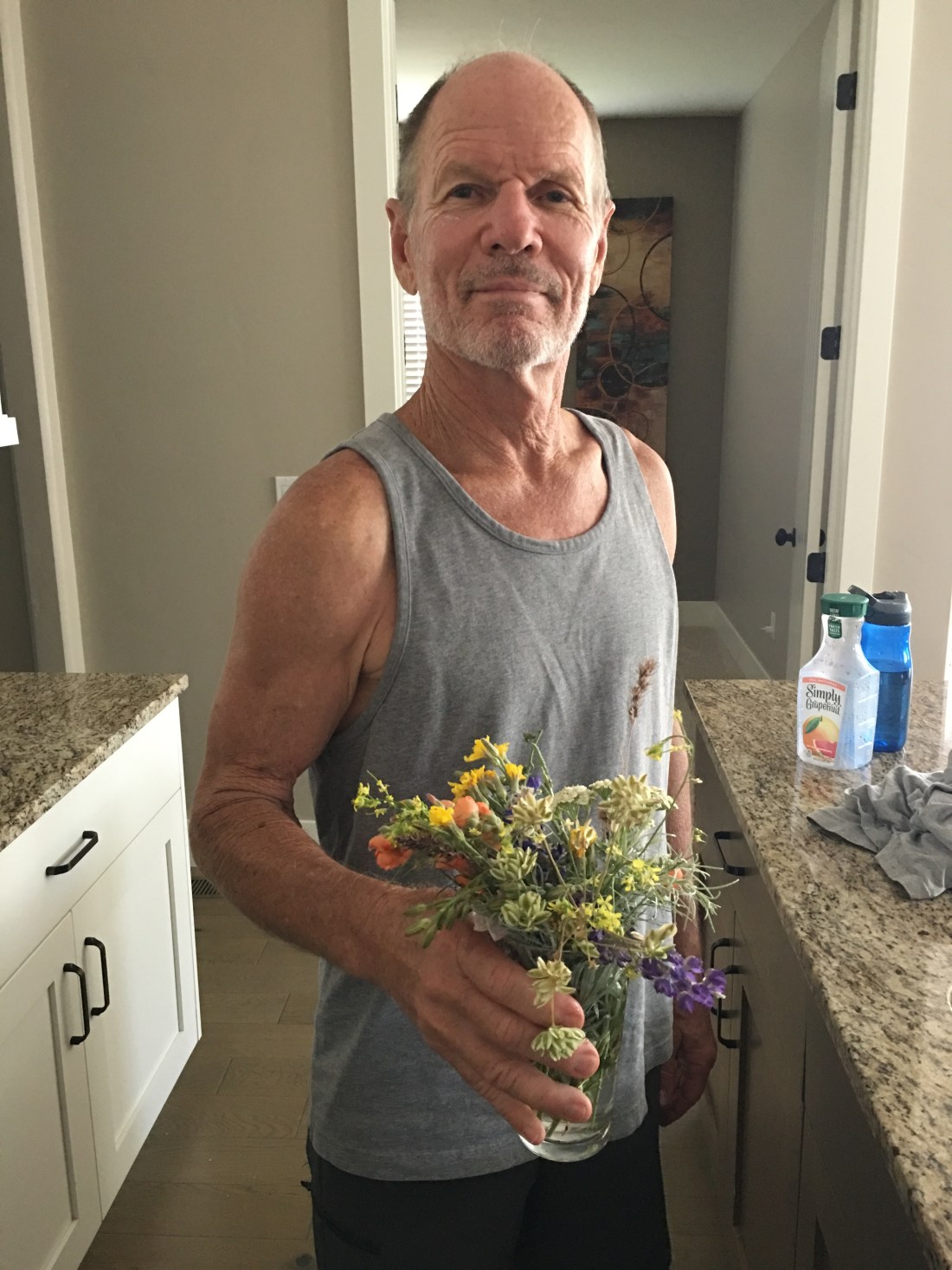 However busy, we are managing to get our miles in and my sweet husband picking bouquets of flowers for me along the way.