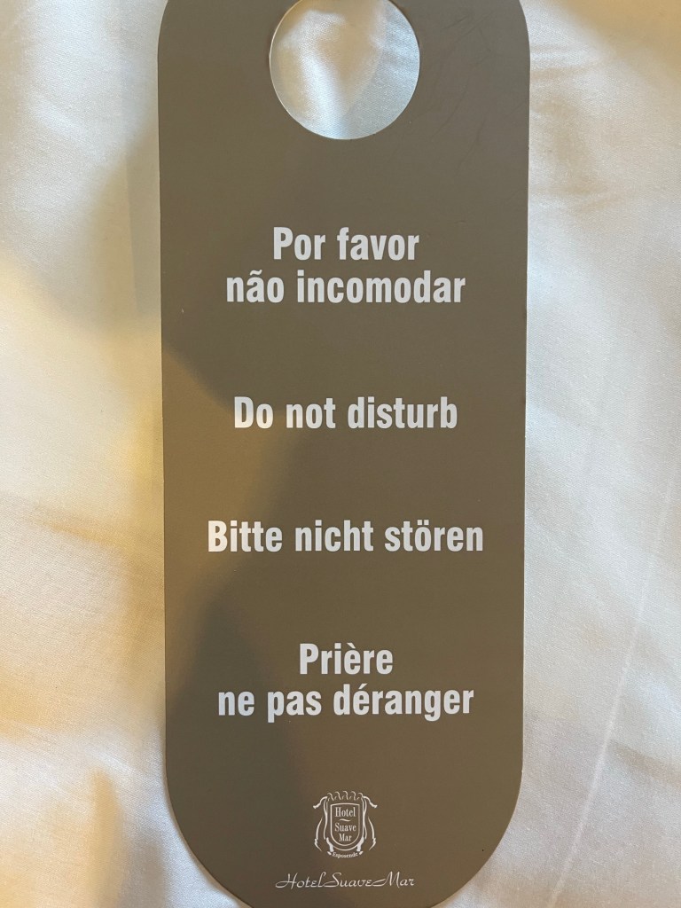 Keep calm and savor the day is the title in English. Our breakfast in Venice had a “keep calm and…” phrase on their sugar packages each morning.